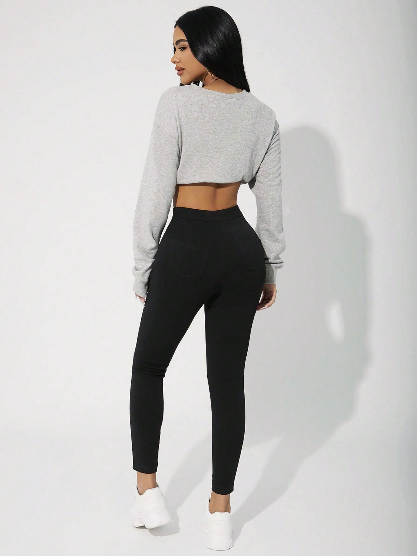 Brushed Fabric Thermal High Waist Skinny Cropped Jeans