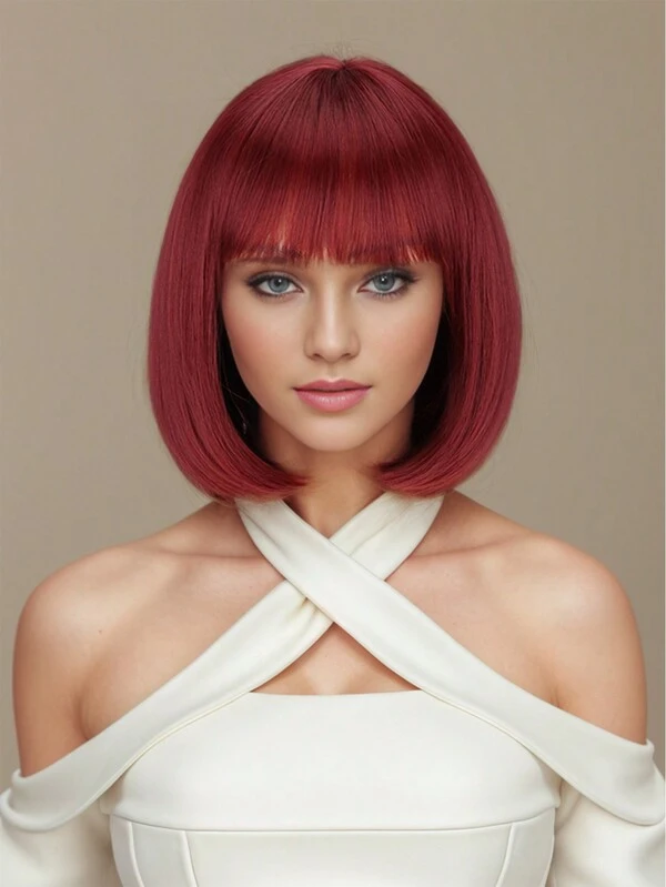Burgundy Bob Headband Wig With Bangs For Daily Wear, Festival And Halloween Costume