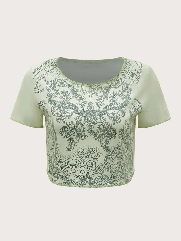 ROMWE Butterfly & Floral Print Crop Tee