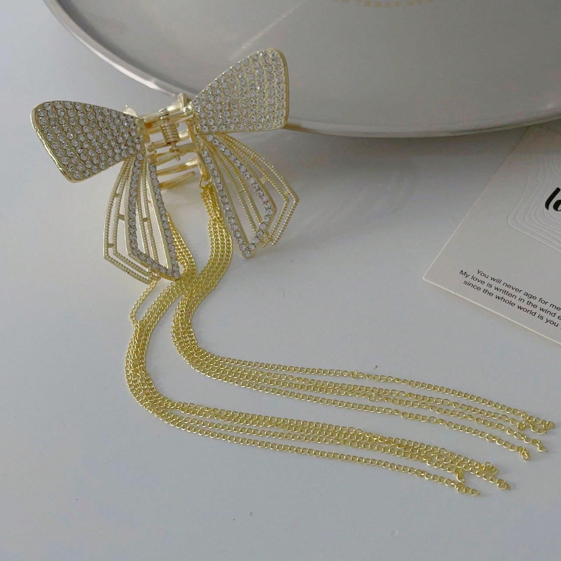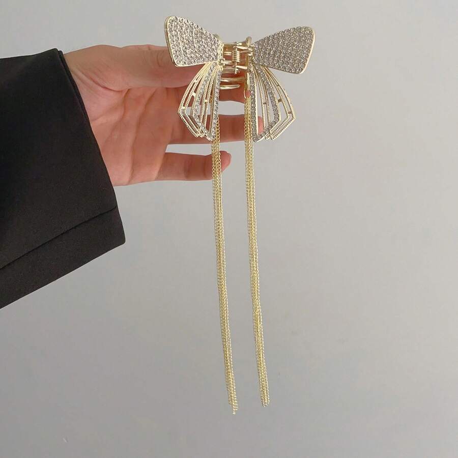 Butterfly & Tassel Design Hair Clip With Rhinestones For Women, High-end And Versatile Hair Accessories For Summer