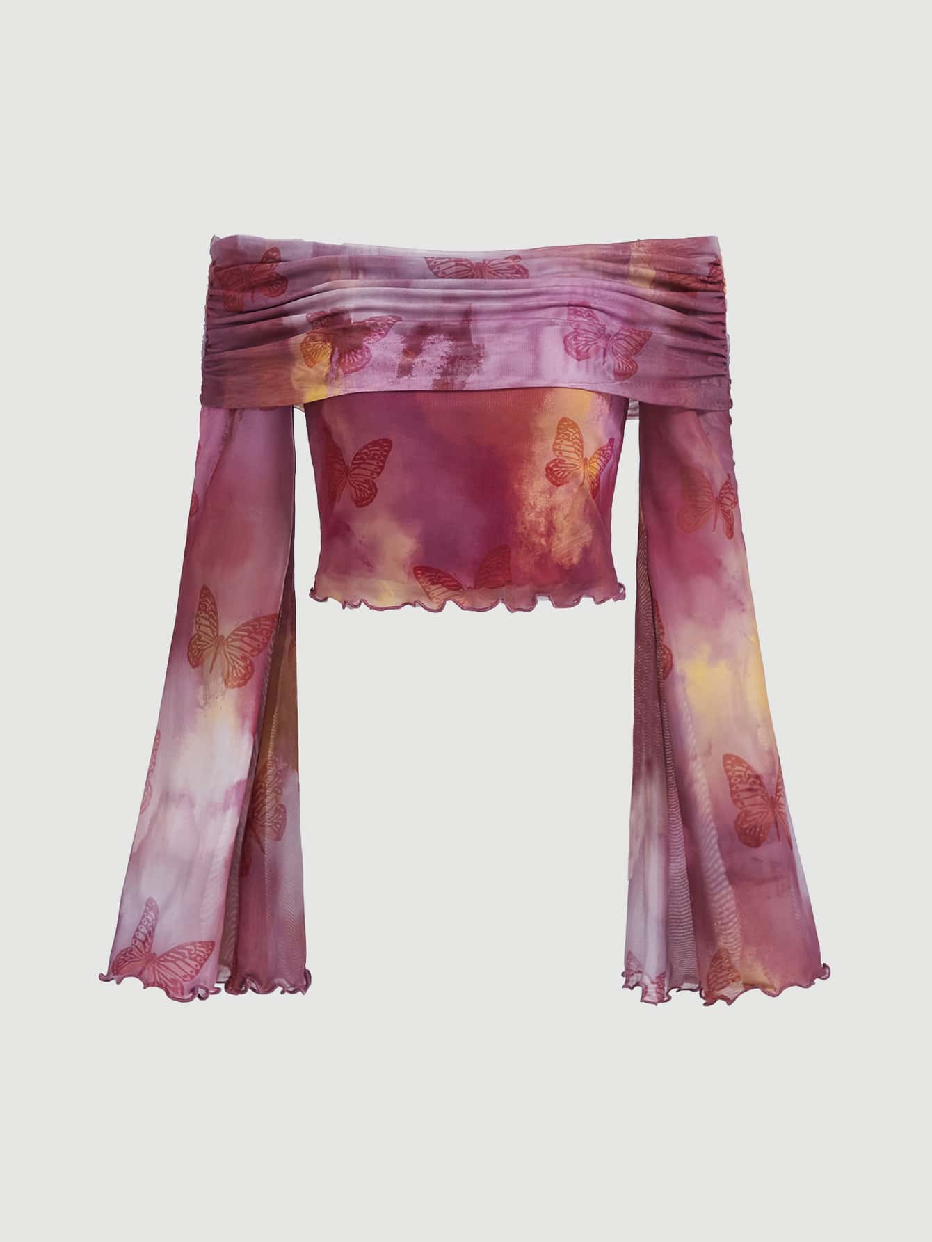 SHEIN MOD Butterfly & Tie Dye Print Lettuce Trim Tee