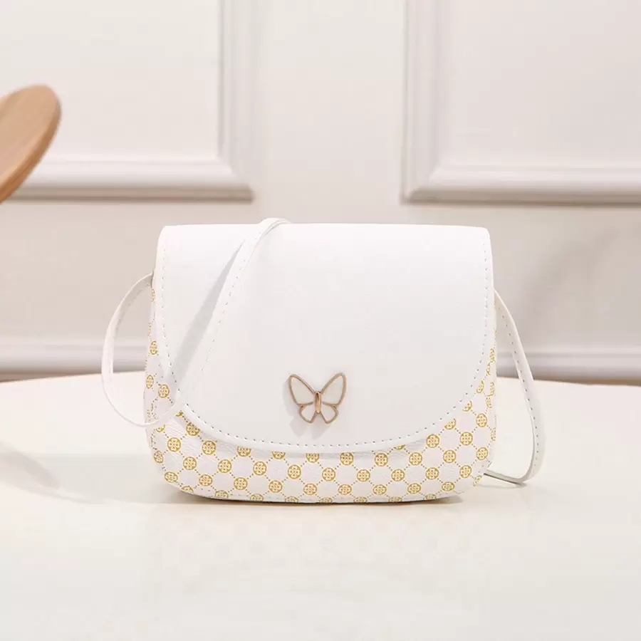 Butterfly Print Decor Metal Chain Shell Crossbody Handbag
