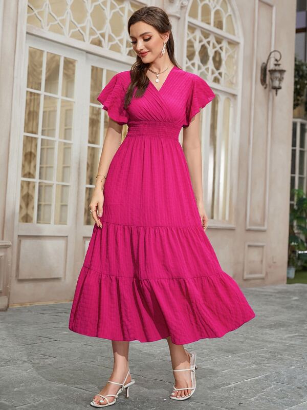 SHEIN Mulvari Butterfly Sleeve Shirred Ruffle Hem Dress