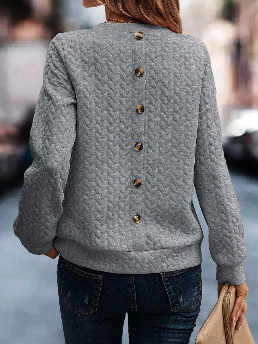 SHEIN Essnce Button Back Drop Shoulder Sweatshirt