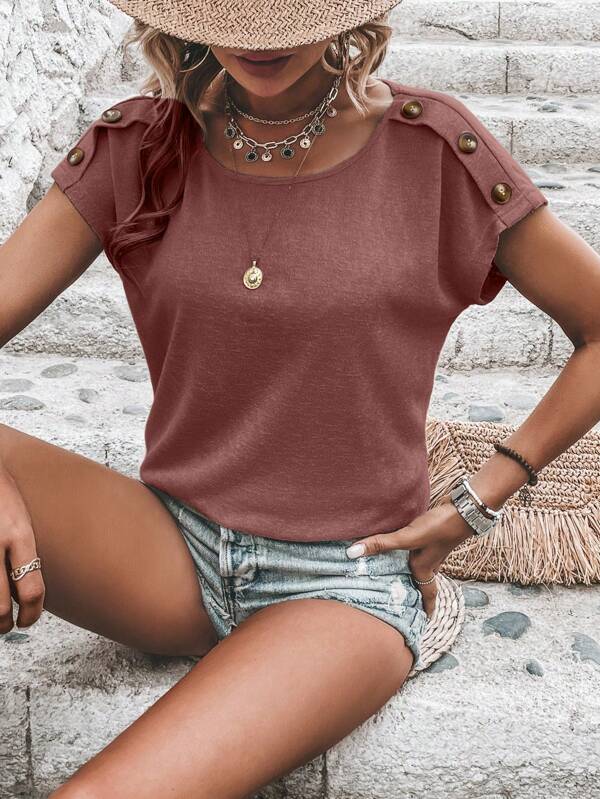 SHEIN LUNE Button Detail Batwing Sleeve Tee
