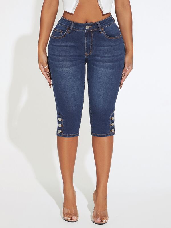 SHEIN SXY Button Detail Skinny Capris Jeans