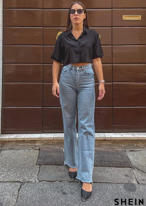 SHEIN LUNE Button Front Crop Shirt