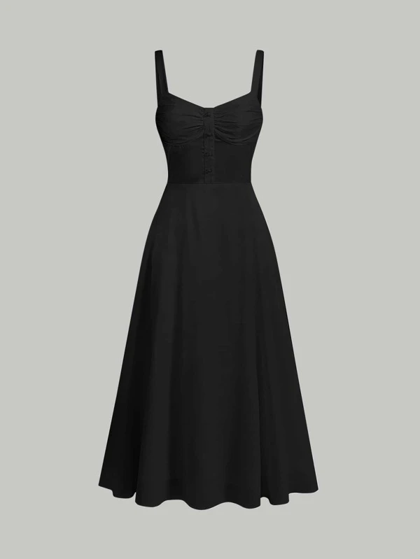 SHEIN MOD Button Front Ruched Detail Cami Dress