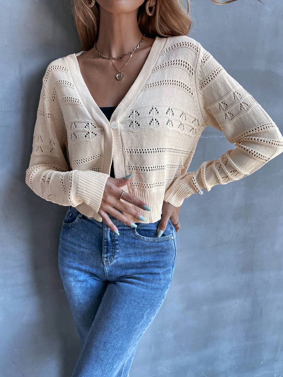 SHEIN Unity Button Up Eyelet Knitted Cardigan