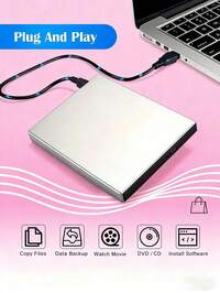 1pc Retro Portable Cassette Player - Tape To MP3 Converter With Auto Reverse, Dual Power (USB/Battery), Built-In Speaker, Plug & Play, Compatible With Windows/IOS, Includes Earphones, Hi-Fi Stereo, Suitable For Nostalgic Travel, Sports, Office, Preserves Vintage Tape Collection - Ideal Gift For Music Lovers Portable USB 2.0 External DVD Drive | Plug And Play, No Driver Required | Slim Portable CD/DVD Burner And Reader Suitable For Laptop, Desktop, Tablet, Smartphone | Data Backup, Movie Playback, Gaming | Black With Power Cord, Data Backup Device, Stylish Reader, Plug And Play, CD Player, Tablet Users