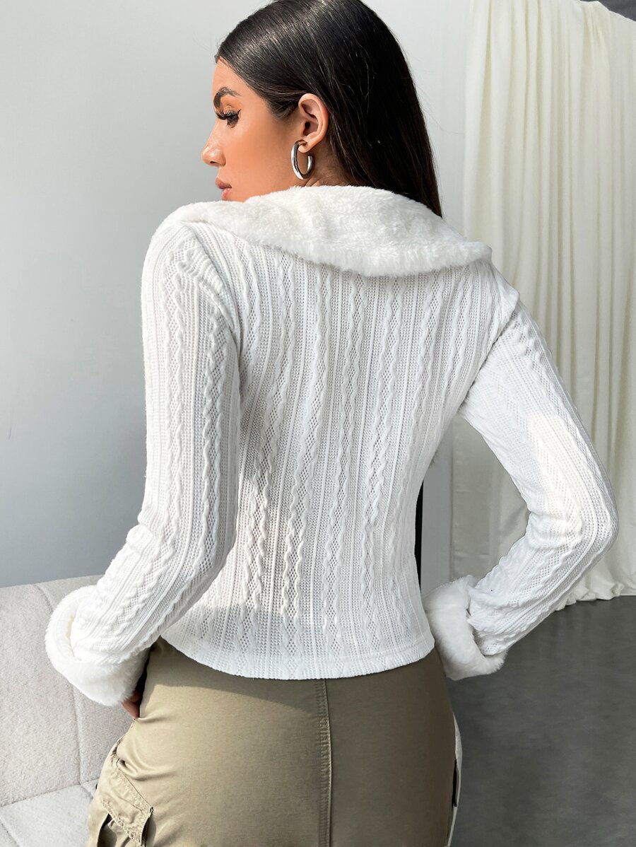 SHEIN Qutie Cable Knit Contrast Collar Jacket
