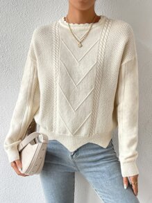 SHEIN Essnce Cable Knit Drop Shoulder Sweater