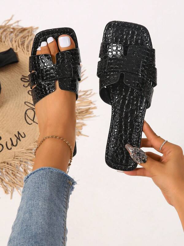 Campus Style Simple And Versatile Square Toe Women's Slippers
