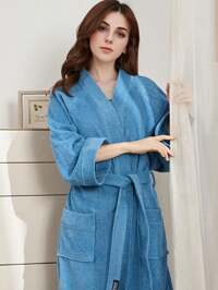 1pc Solid Color Couple Bathrobe For Men And Women, Unisex Hotel Robe, Wearable Towel, Bath Towel, Hood Or Lapel Style Multiple Colors Available, Wearable Towel, Bath Wrap, Loungewear, Dressing Grown, Home Wear, Coral Fleece, Plush Soft, Quick Drying, Suitable For Home, Hotel, Bathroom, Party, Swimming Pool, Picnic, All Season Use Bathroom Decor, Presents,Bath Robe, Bathroom Accessarles,Valentine's Day Gift #5 Bestseller