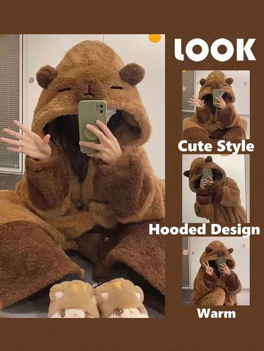 Capybara Pajamas, Bear Pajamas, Couple Pajamas, Women's Pajamas, Cute Fleece Pajamas For Fall/Winter, Fleece Winter Pajamas That Can Be Worn Outdoors