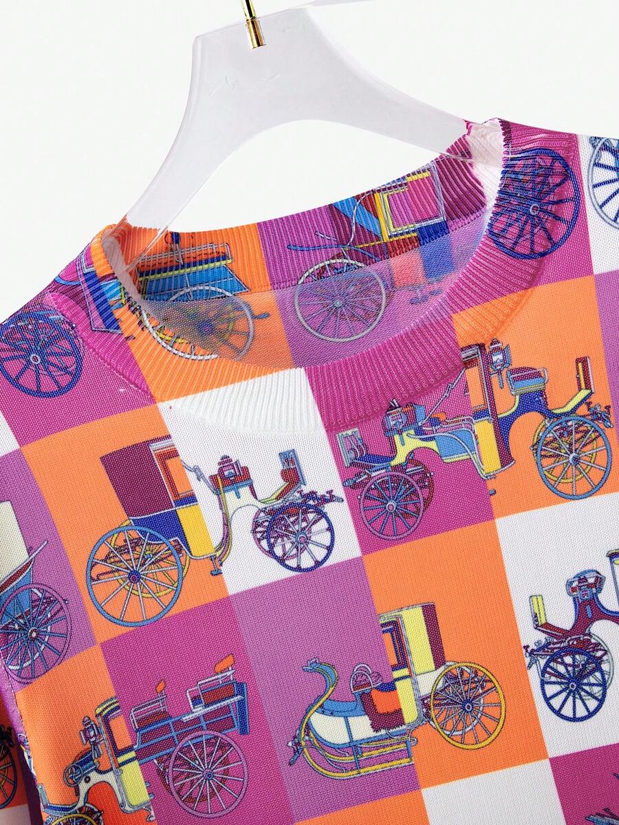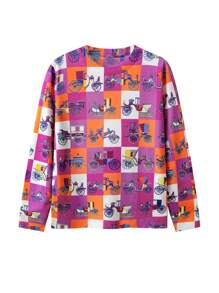 Cartoon & Plaid Pattern Sweater