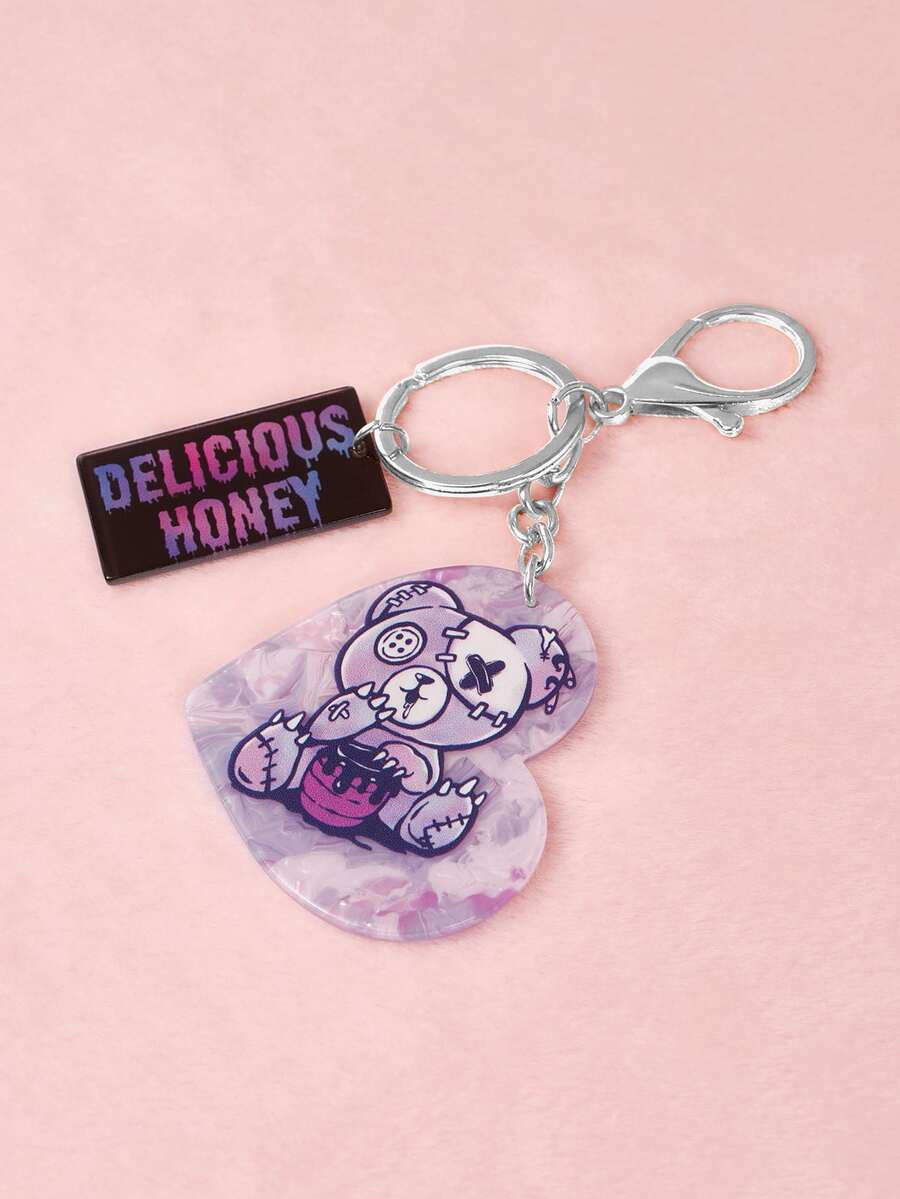 ROMWE Kawaii Cartoon Bear Pattern Heart Charm Keychain