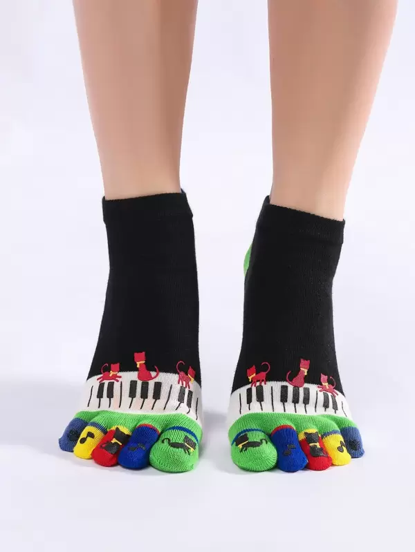 Cartoon Cat & Piano Key Pattern Toe Socks