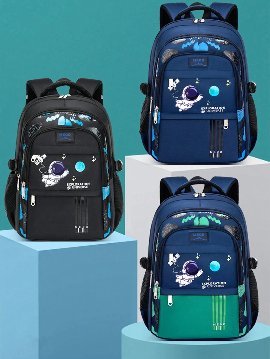 Cartoon Double-Shoulder Space Astronaut Bookbag, Waterproof Backpack, Large Capacity For Boys Aged 7-14 In Primary School, Good For Gift
