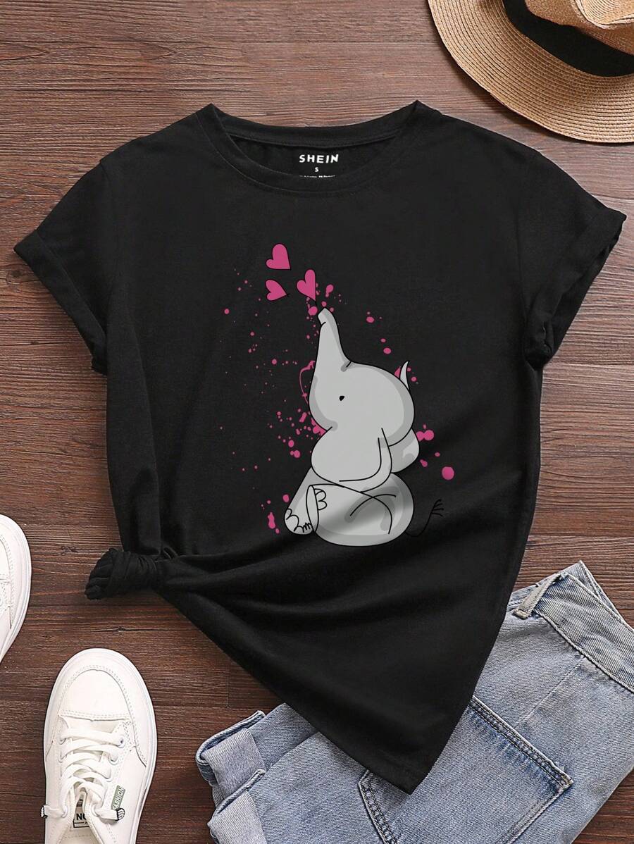 SHEIN LUNE Cartoon Elephant Print Tee