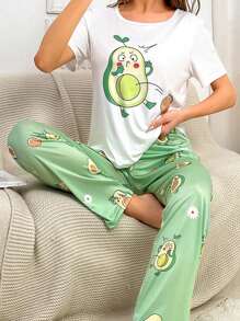 Cartoon Graphic Tee & Pants PJ Set