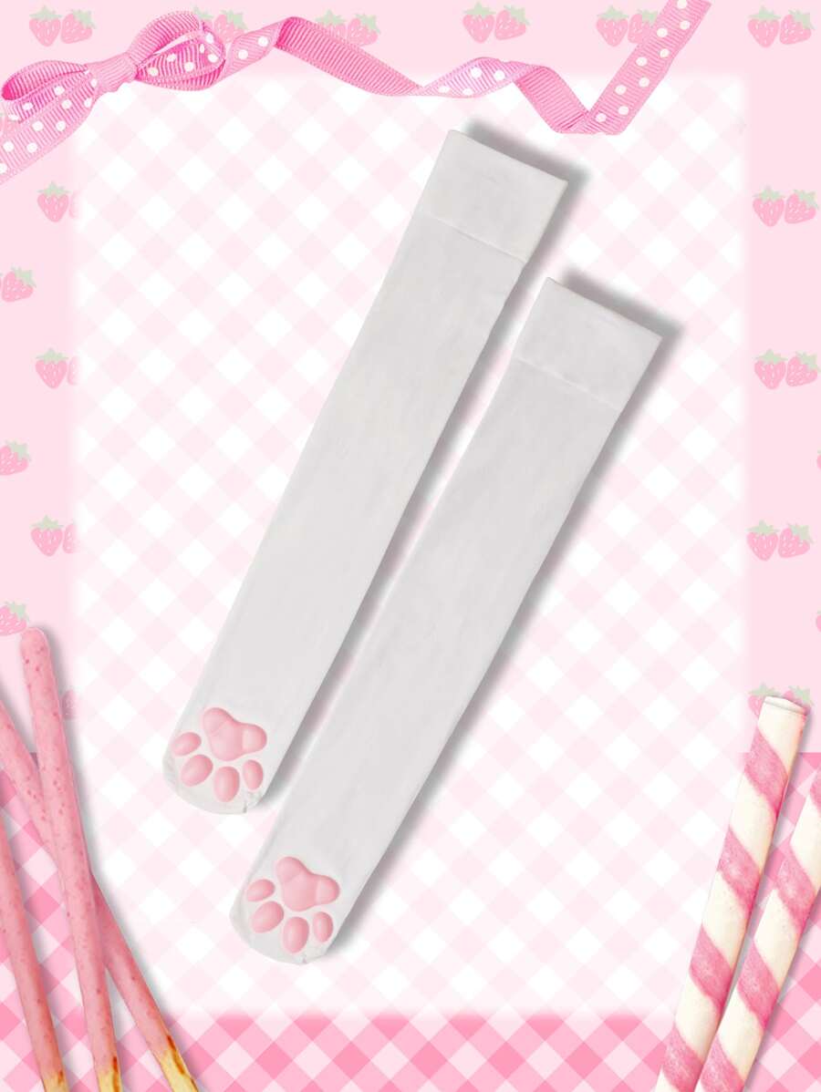 ROMWE Kawaii Cartoon Paw Decor Socks
