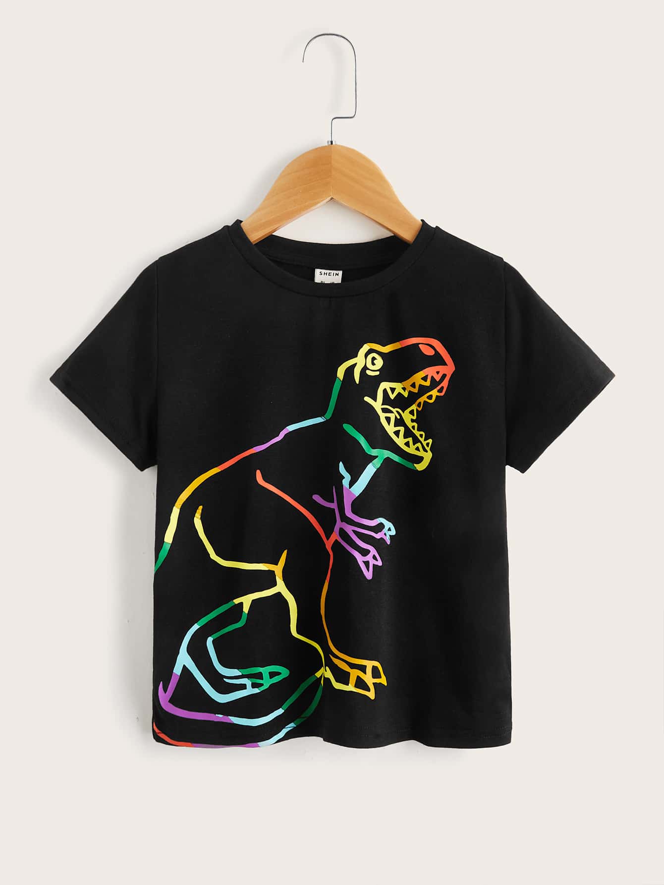 SHEIN Kids EVRYDAY Young Boy Cartoon Printed Fashionable Dinosaur Pattern T-Shirt