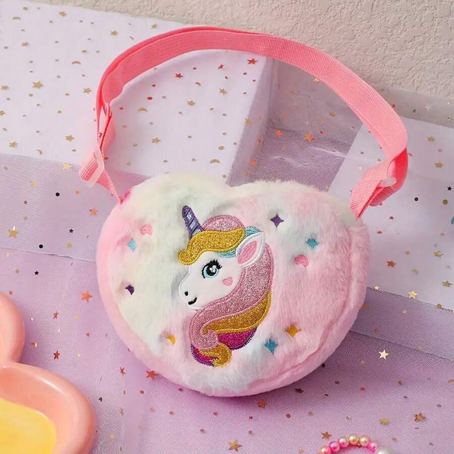 Cartoon Unicorn Single Shoulder Bag For Children, Cute Girls' Everyday Crossbody Bag, Heart Shaped Storage Bag, Random Color 1pc