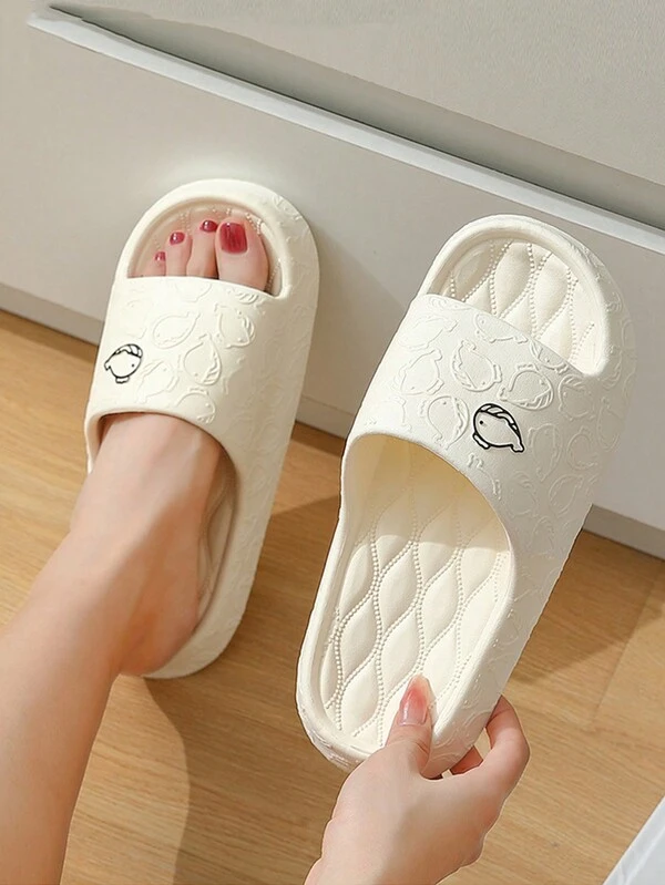 Cartoon Whale Pattern Women's Thick Sole Anti-slip Eva Slippers For Home And Bathroom, White