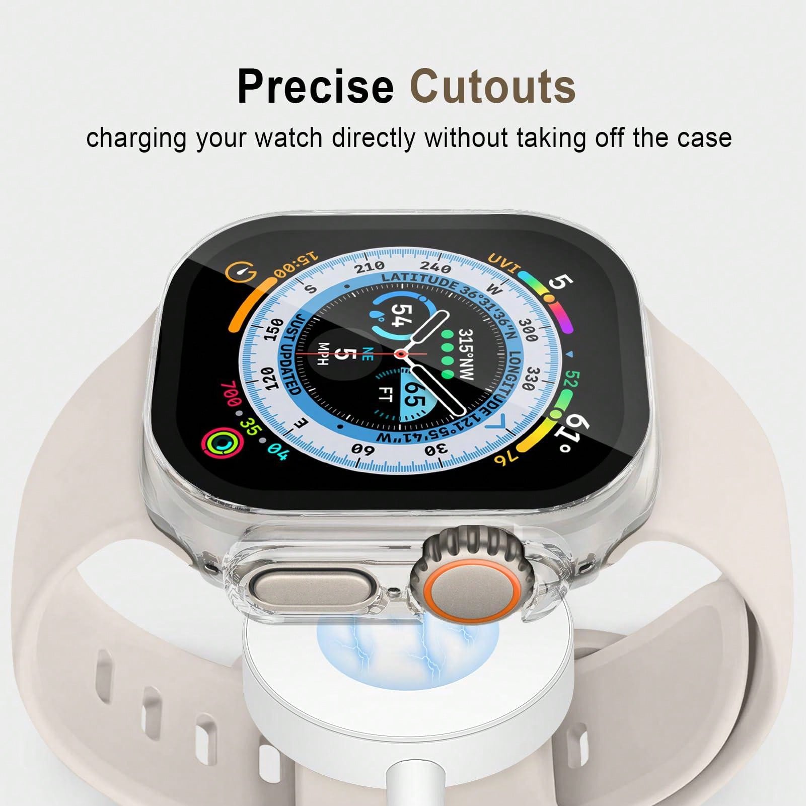 Case & Screen Protector Cover For Apple Watch Ultra 2 49mm,Hard With Tempered Glass Screen Protector,Watch Cover Series 9 Protector,Ultra-Thin Durable Waterproof Case,1pc,Clear
