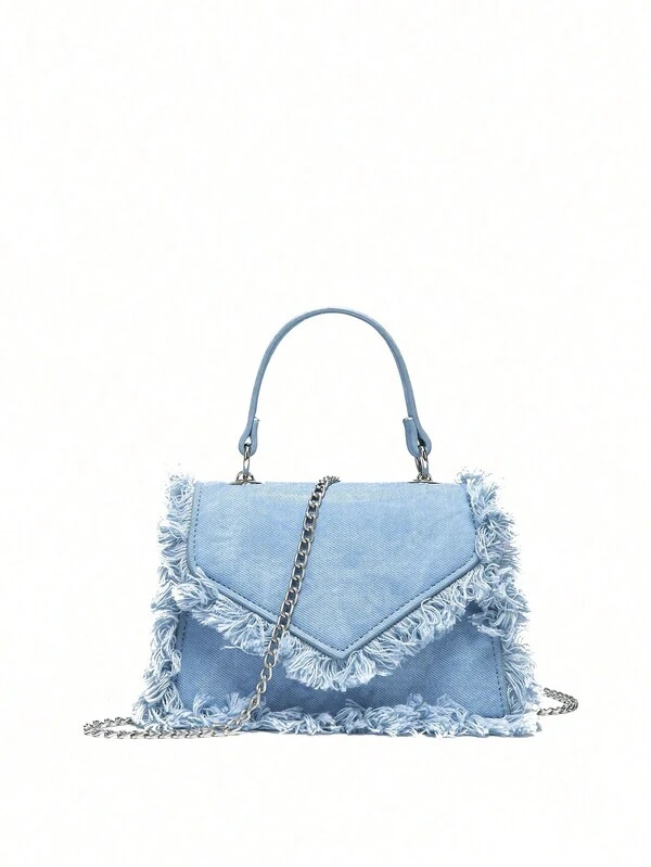 Casual & fashion style tie-dye solid color tassel edge flip design chain decorated handbag crossbody bag suitable for dates, parties, cosmetics storage, college students attending classes, and young women working and traveling