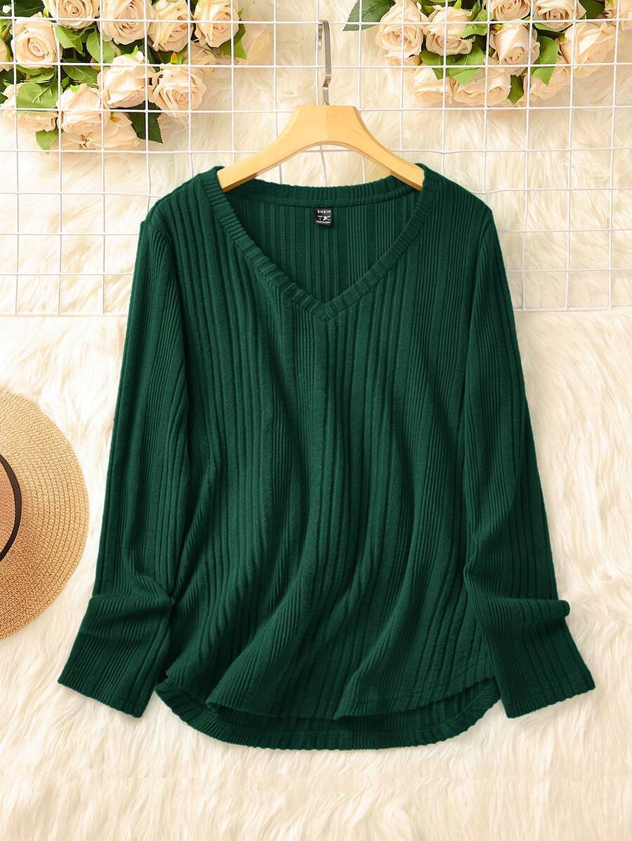 SHEIN LUNE Casual Knitted Slim Fit Women's T-Shirt With Small V-Neck