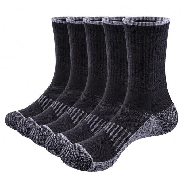Casual Men Socks Moisture Wicking Cushioned Athleitc Crew Socks Performance Sports Socks Padded Work Socks 5 Pairs