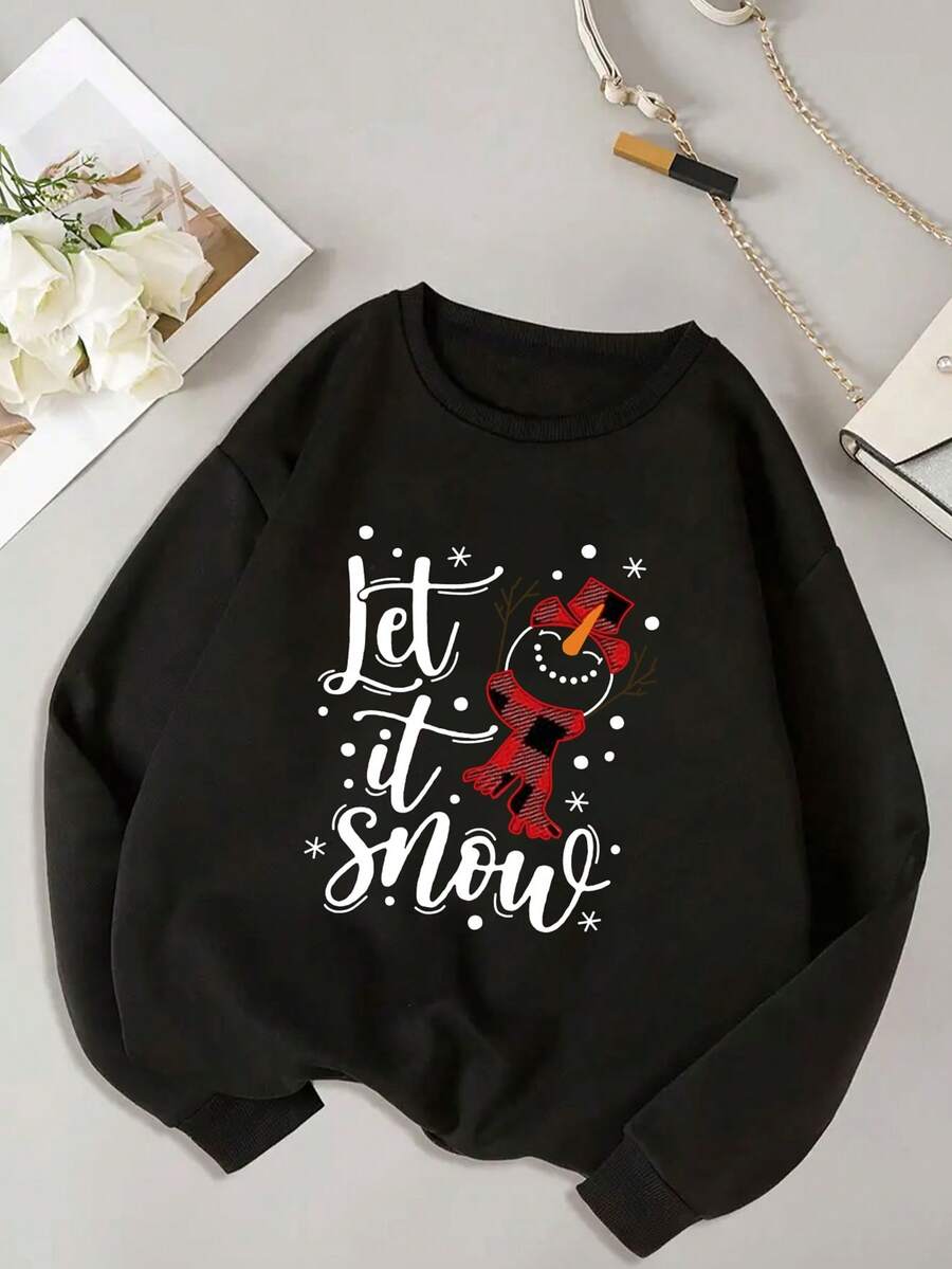 Casual Simple Style Round Neck Fleece Sweatshirt With Christmas Snowman And Letter Print