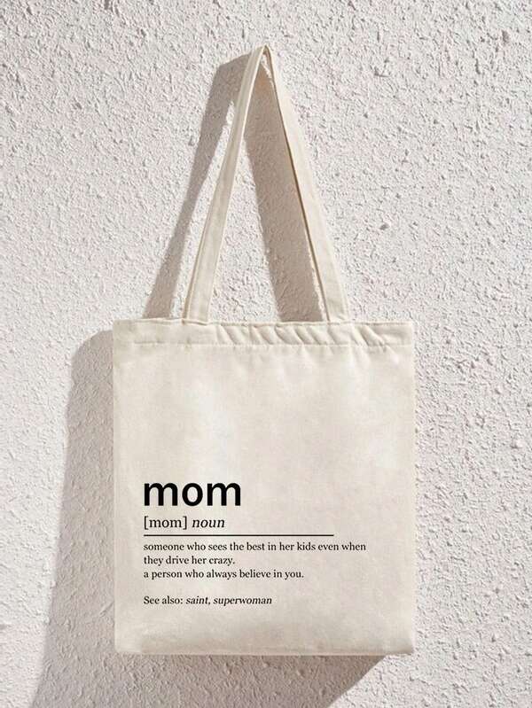 Casual Tote Bag Letter Print Double Handle, Mothers Day Gift For Mom School Bag For Graduate, Teen Girls, Freshman, Sophomore, Junior & Senior In College, University & High School, Perfect For Outdoors ,Travel & Back To School