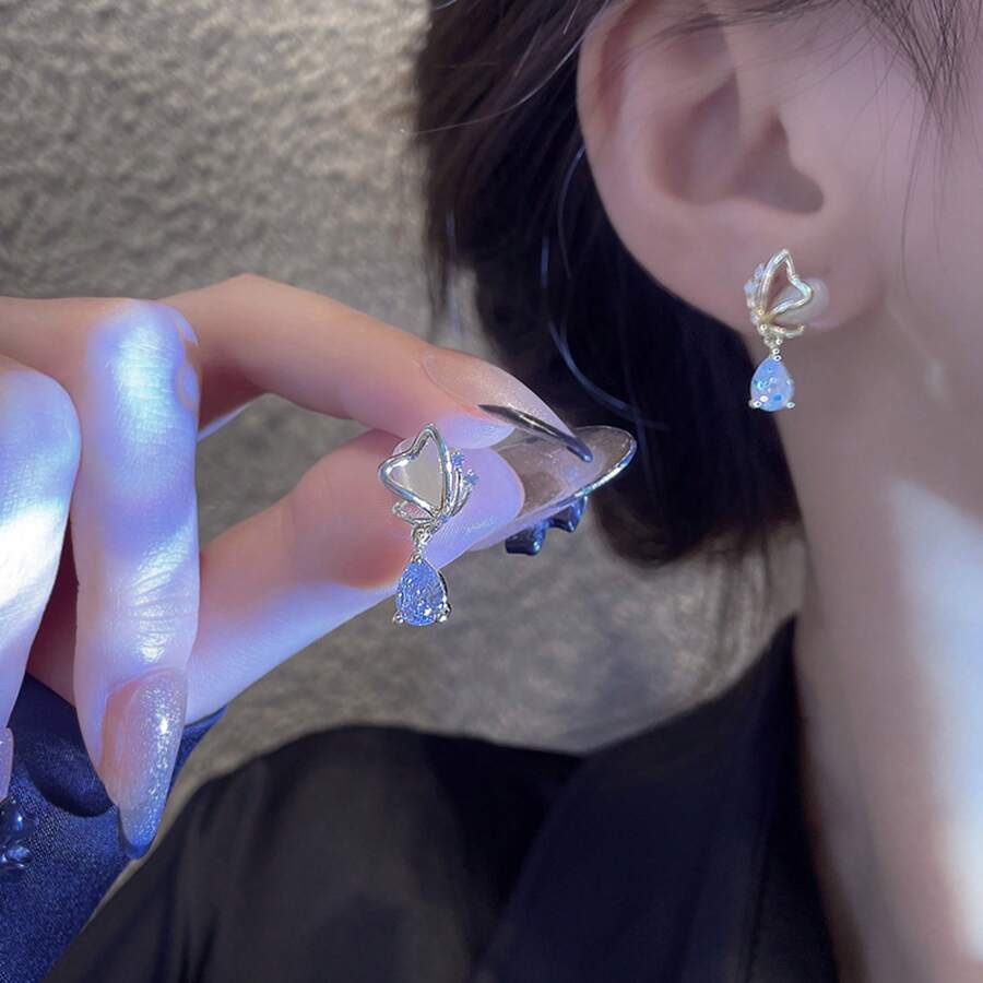 Cat'S Eye Stone Butterfly Heart & Waterdrop Shaped Earrings With Unique Design, High-End Fashion, Sweet & Fresh, Suitable For Women To Wear For Daily Wear & Parties, Gift Option