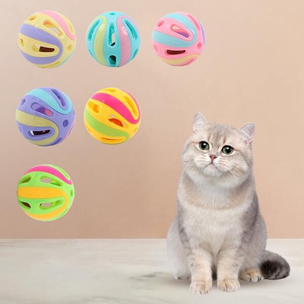 Cat toy plaid ball with bell bulk pet plastic bell toy