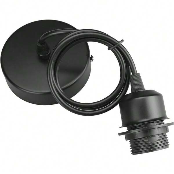 Ceiling Pendant Light Fitting With LED Bulb 3000K Warm Light/ 6500K White Light,E27*1 Screw Lamp Holder Suspended Pendant Light Fitting Kit With Lock Ring, 100cm Flex Cable Ceiling Black Metal DIY Light