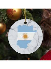 1 Argentina Ceramic Ornament - National Emblem And Map Outline With Flag Colors (White, Blue, Gold) - Bohemian Style Tree Hanging Decoration For Home, Office, Or Diplomatic Display - No Electricity Required - Argentina Republic Symbol Gift For H
