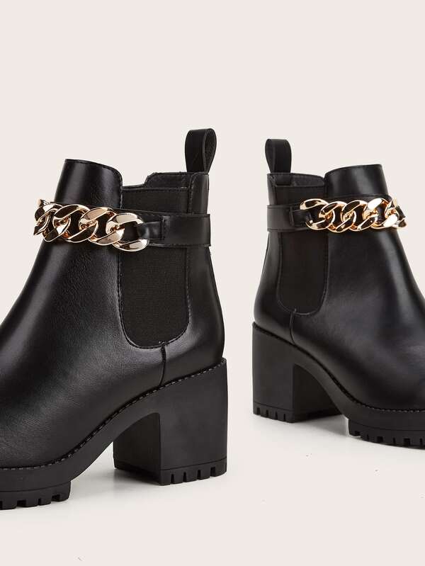 Chain Decor Platform Chelsea Boots, Black Fashion Solid Color Women's Fashion Boots