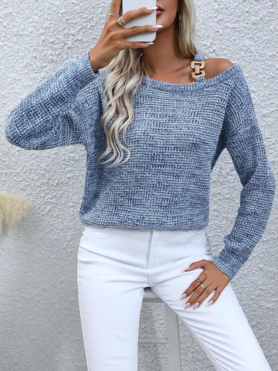 SHEIN LUNE Chain Detail Asymmetrical Neck Drop Shoulder Sweater