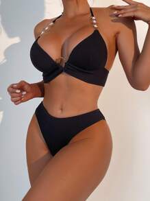 Swim SXY Summer Beach Chain Linked Halter Push Up Bikini Set