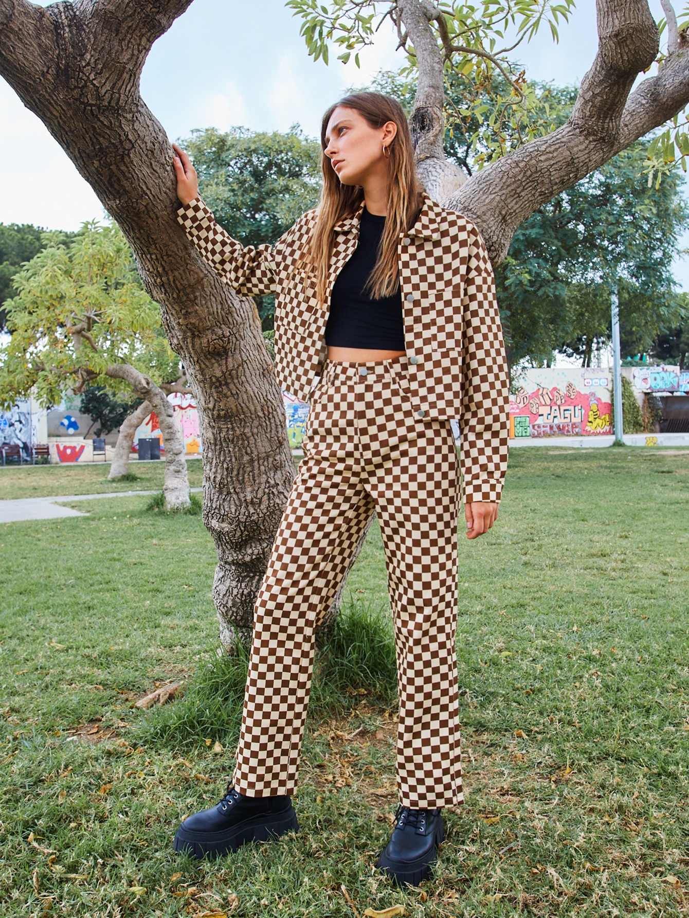 SHEIN Unity Checker Print Drop Shoulder Jacket