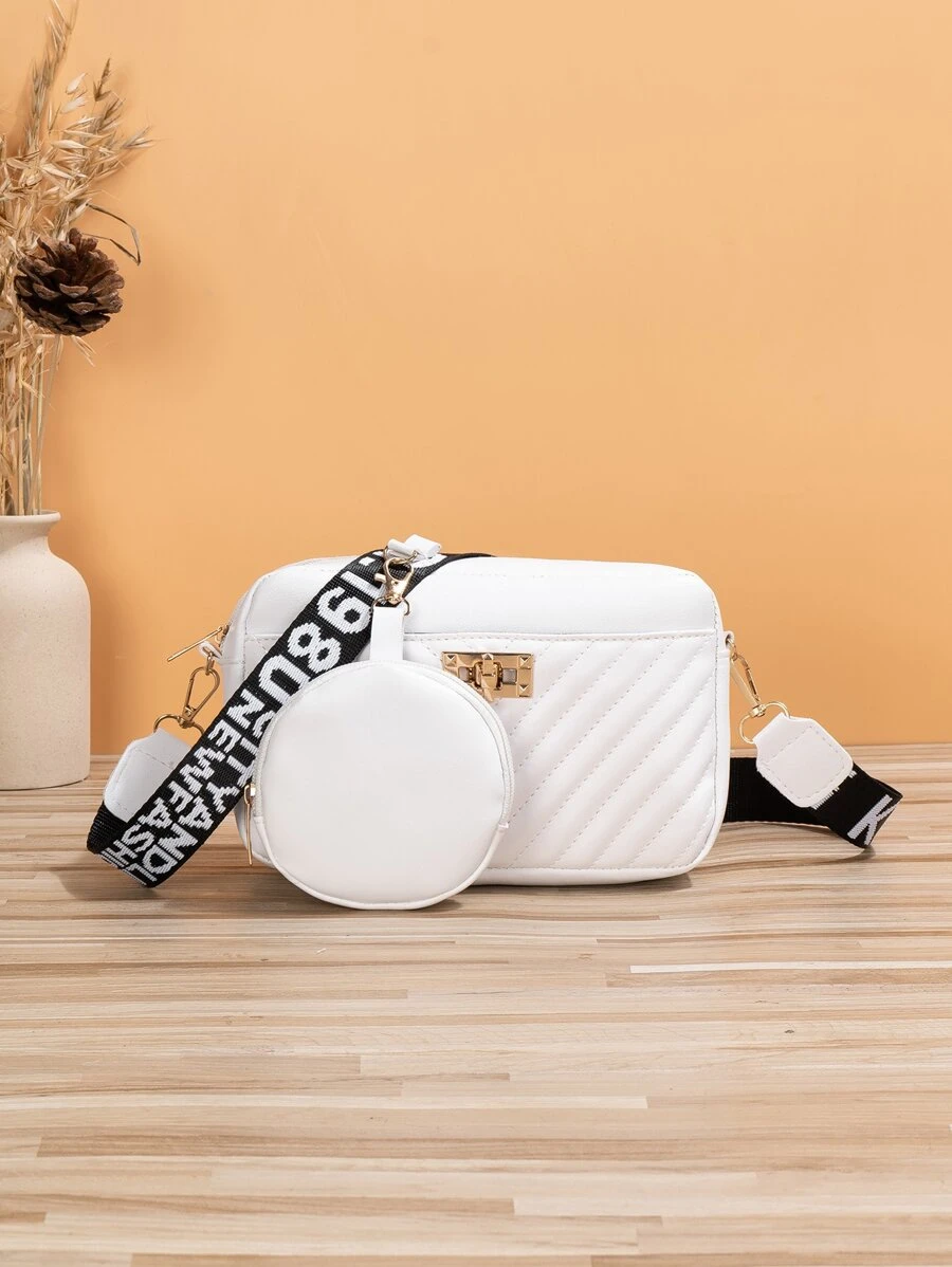 Chevron Detail Twist Lock Square Bag With Coin Purse