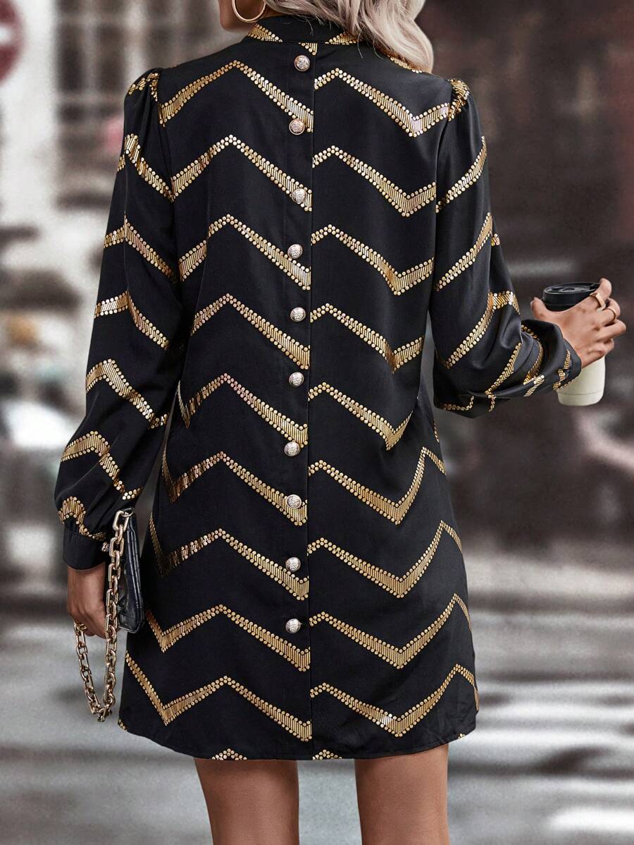 SHEIN LUNE Chevron Print Button Back Shirt Dress