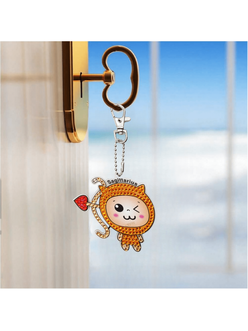 Children'S Handmade Diy Diamond Painting Cartoon Twelve Constellations Keychain, 5d Diamond Keychain Pendant Accessories