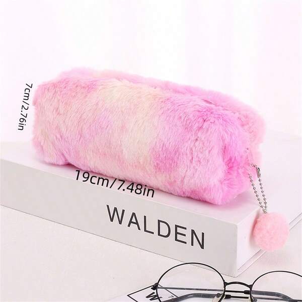 Children Creative Gradient Color Pencil Case And Coin Purse, Cute Plush Octagon Pencil Box, Student Simple Storage Bag, Random Color