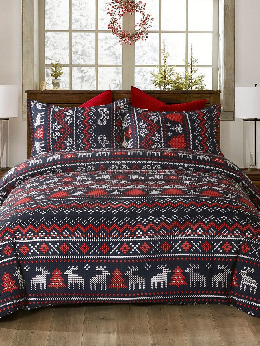 Christmas Deer Pattern Duvet Cover Set Without Filler