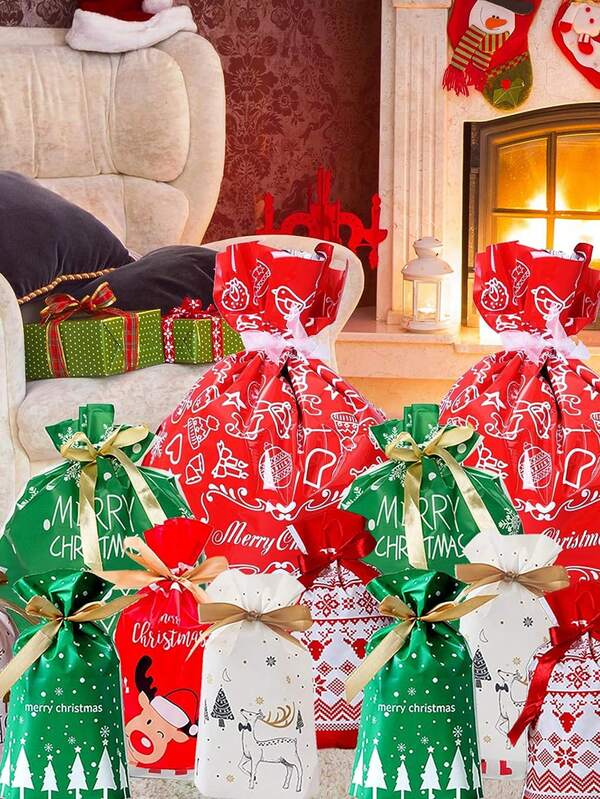 Christmas Drawstring Gift Bags 7PCS in 7 Styles christmas gift bags Xmas Treats Bags Christmas Party Favor Pouch Goody Sweet Treat Candy Bags with Ribbon Ties Christmas Gift Bags Drawstring