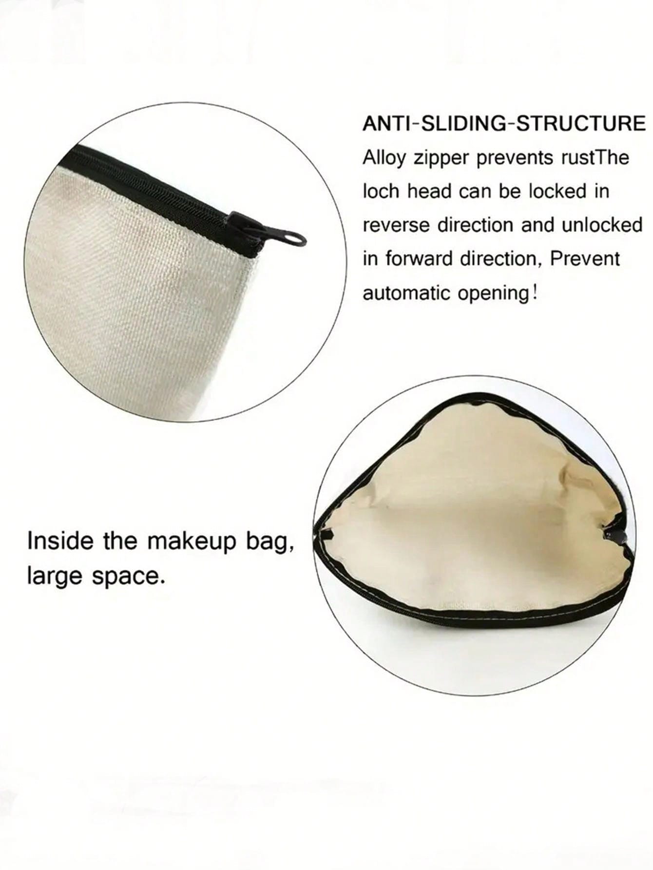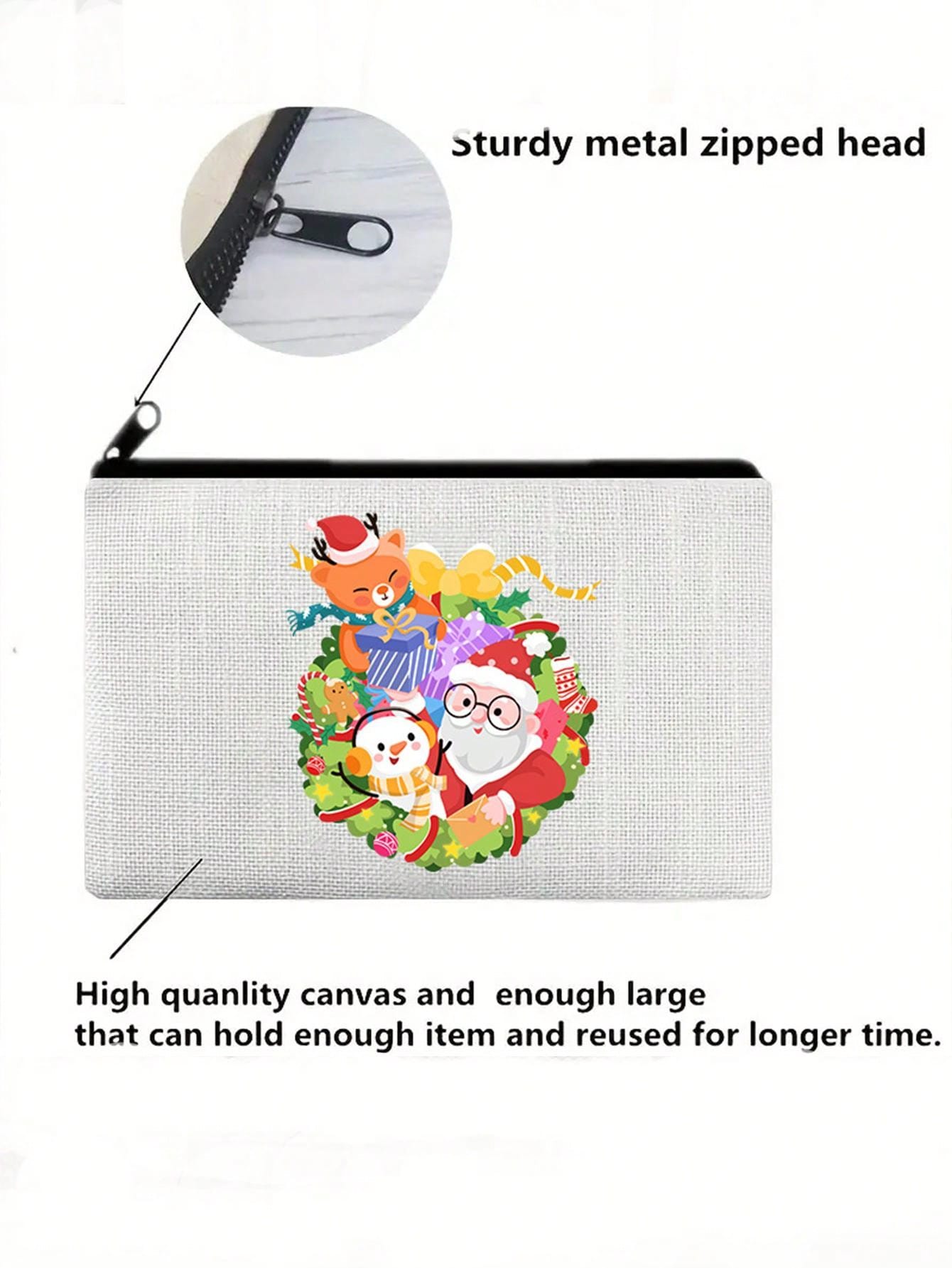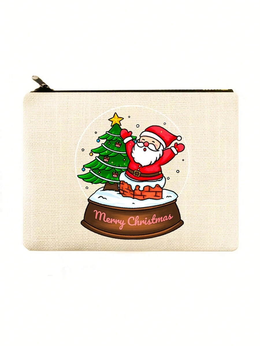 Christmas Makeup Bag, Santa Claus & Reindeer Printed, Canvas Material, 1pc